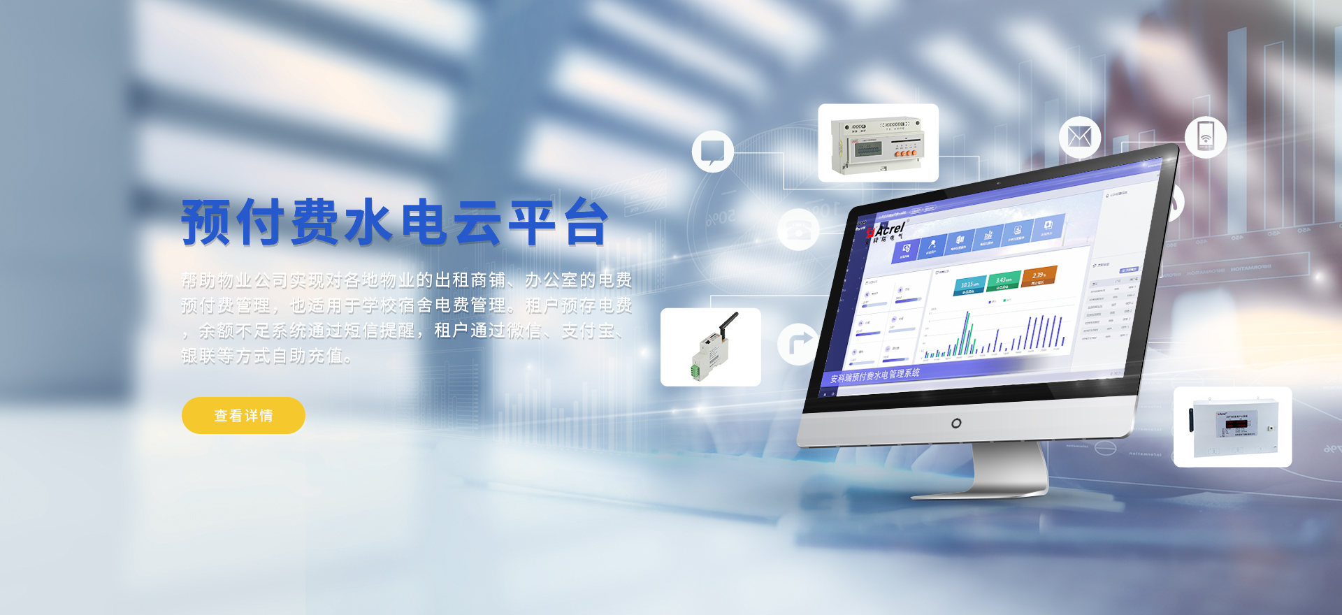 安科瑞提供的解決方案包括Acrel-EIoT能源物聯(lián)網(wǎng)云平臺(tái)變電所運(yùn)維云平臺(tái)安全用電管理云平臺(tái)環(huán)保用電監(jiān)管云平臺(tái)智慧消防云平臺(tái)能源管理云平臺(tái)、工業(yè)企業(yè)能源管控平臺(tái)、遠(yuǎn)程預(yù)付費(fèi)云平臺(tái)餐飲油煙監(jiān)管云平臺(tái)電動(dòng)汽車/電瓶車充電樁收費(fèi)管理云平臺(tái)、電力監(jiān)控/無線測溫系統(tǒng)、電能質(zhì)量治理系統(tǒng)、電氣火災(zāi)監(jiān)控系統(tǒng)消防設(shè)備電源監(jiān)控系統(tǒng)防火門監(jiān)控系統(tǒng)應(yīng)急照明和疏散指示系統(tǒng)、智能照明控制系統(tǒng)、醫(yī)用隔離電源絕緣監(jiān)測系統(tǒng)等,幫助用戶實(shí)現(xiàn)能源智能化、可視化、精細(xì)化管理,提高用能效率和用能安全,為企業(yè)節(jié)能降耗和實(shí)現(xiàn)能源數(shù)字化建設(shè)提供數(shù)據(jù)服務(wù)。
